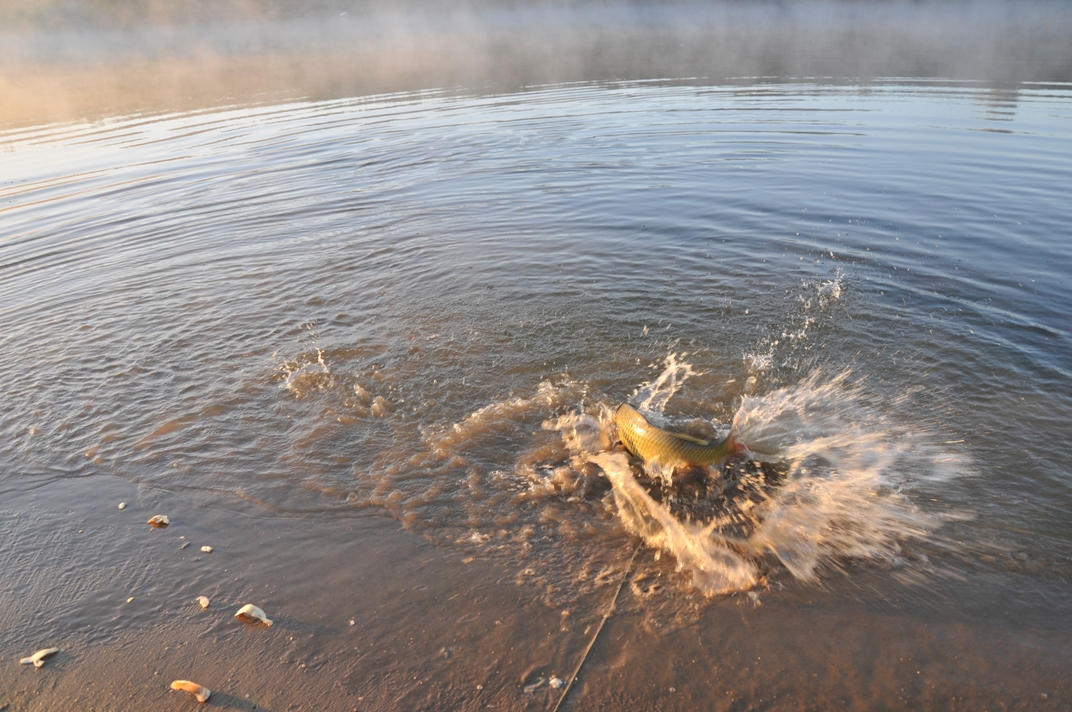 Чудо,как и было предсказано,не повторилось,но было совсем близко к осуществлению... В течение где-то 30 секунд на крючке висело что-то (возможно таких же размеров зубастик). Результат - разогнуты 2 из 3-х крючков тройничка, а рыбка осталась в воде набирать вес. Вывод - надо ставить крючок побольше. Надеюсь следующий поход будет более удачным.