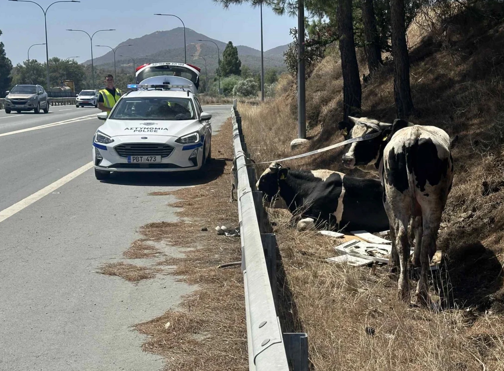 Две коровы, которые пол дня паслись на автомагистрали Лимассол-Никосия, выпав из перевернувшегося грузовика, наконец после обеда были убраны, новый грузовик прибыл около 13:30 и погрузил обеих коров в кузов. Вероятно уже доставлены на мясокомбинат и забиты.