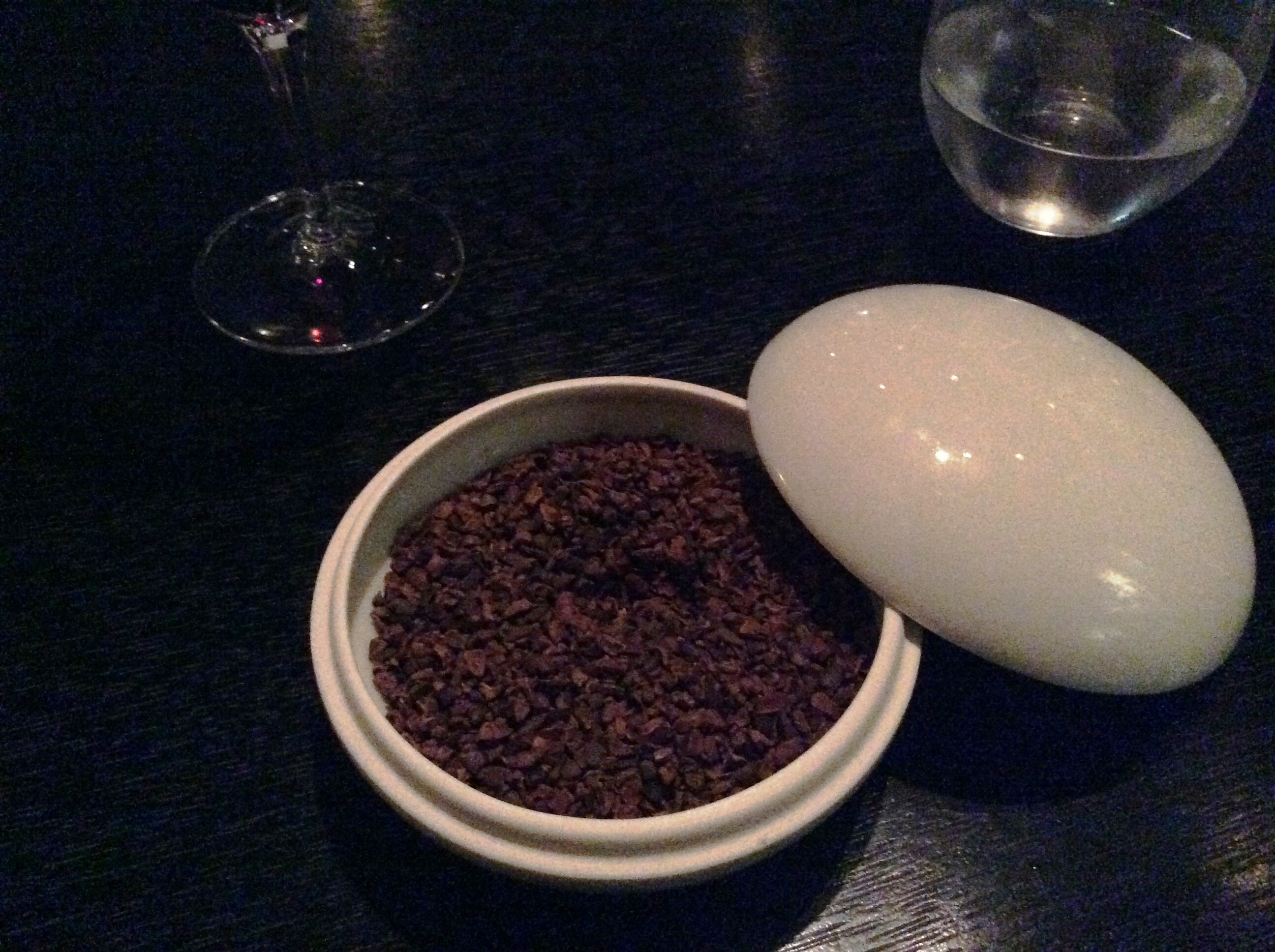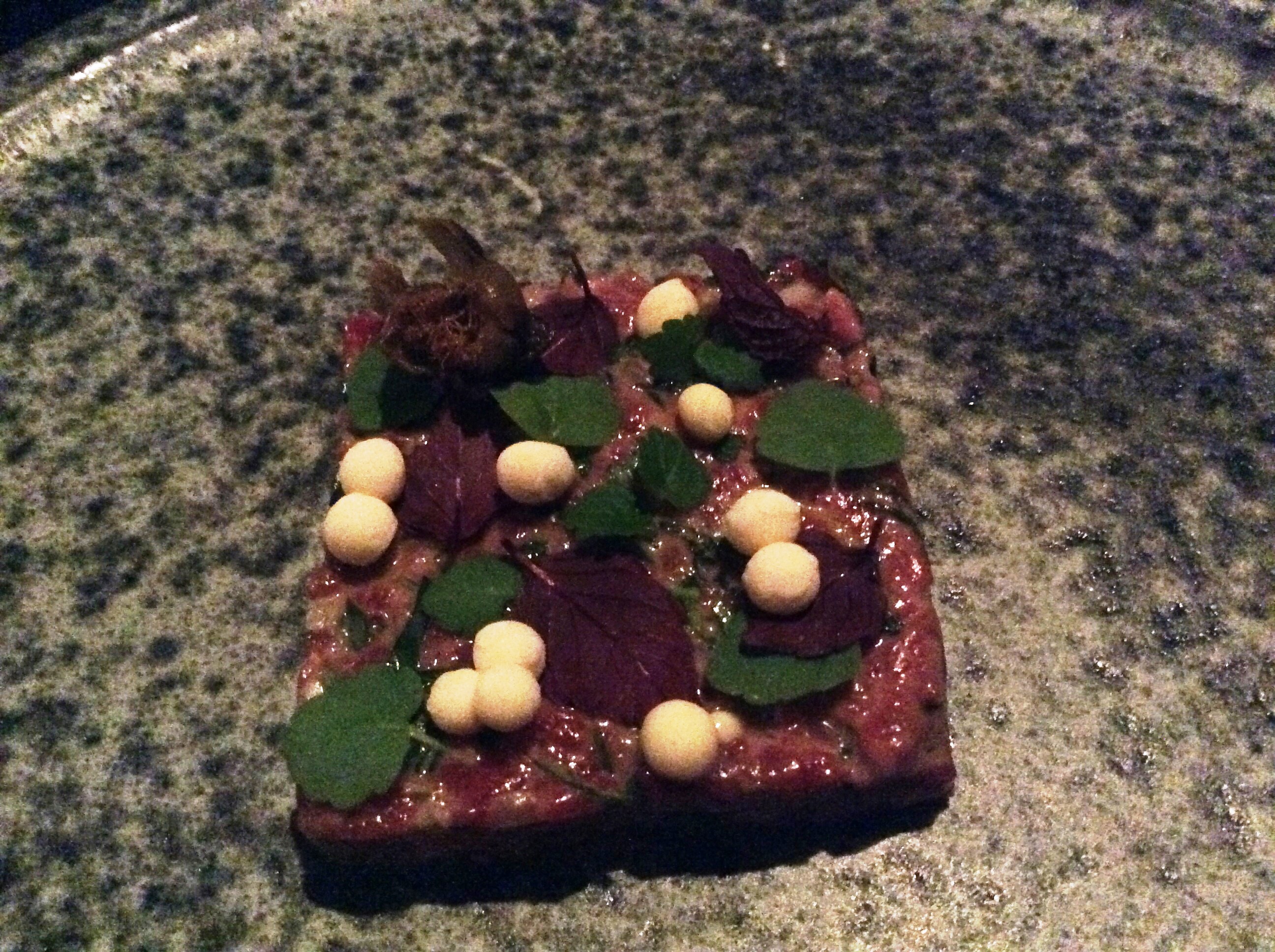 Блюдо первое: комплимент от повара - греческая боттарга с белым шоколадом.