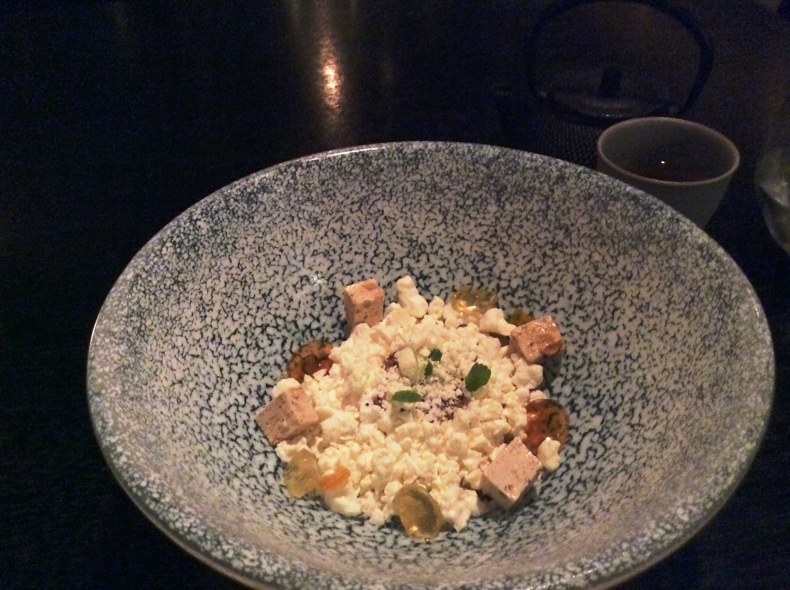 Дальше десерт- не десерт. Назвали так, но трюфель из фуа гра... На стружке из горького шоколада... Вкусно, но на десерт имхо не тянет. Фуа гра не из банки, а быстро обжаренная свежая печень утки или гуся. Это вкуснее в стописяттысяч раз!