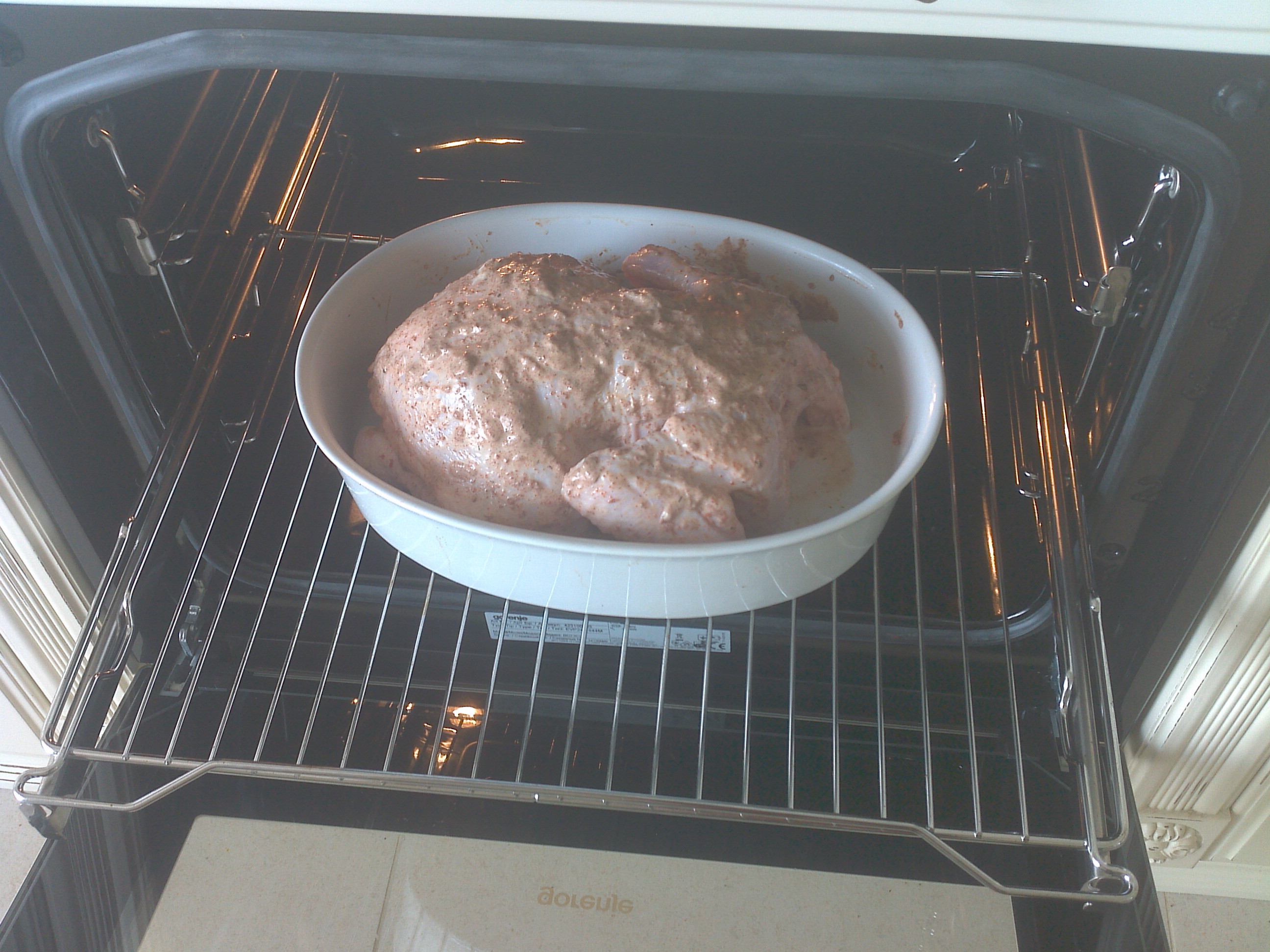 alexalex Одеваете куру на бутылку с налитой в нее водой на 2/3 и ствите на ваш керамический поднос. Получается очень сочная, называется трахнутая кура! :smiley: