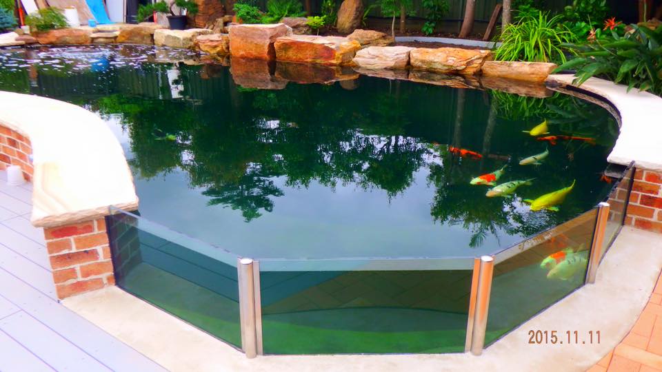 Зацените какие бывают небольшие прудики с кои. Мне симпатичен вариант со стеклянной стенкой.