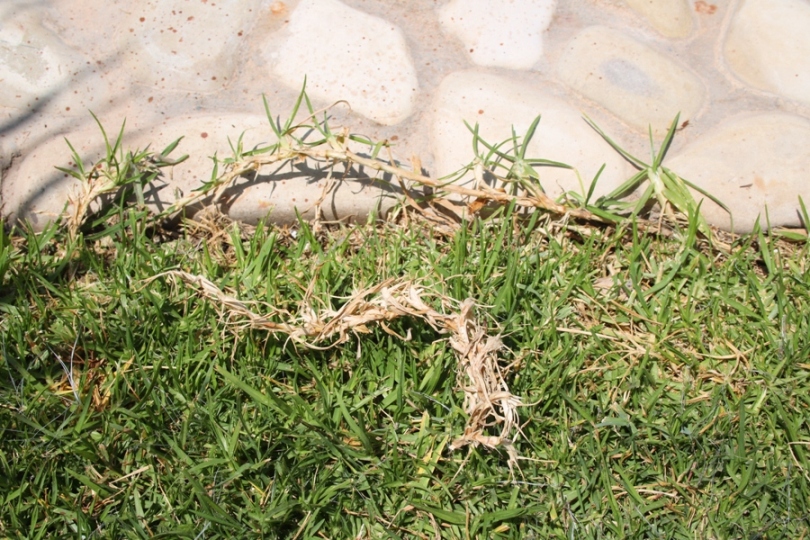 Кто смотрит за своим газоном, сейчас лучшее время "обрить" его налысо, что бы удалить старые ороговевшие побеги, подкормить нитрофоской и золой из камина, если есть. Потом интенсивно полить. И через несколько дней появятся молодые салатово изумрудные побеги, которые вас будут радовать все лето.