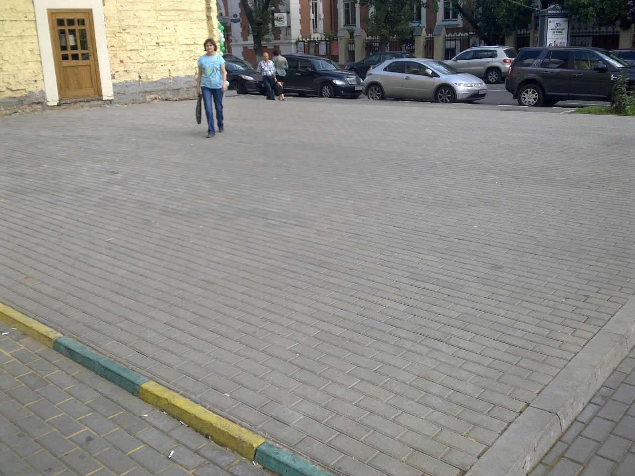 Это был зеленый сквер 10 на 10м. Что от него осталось. Заложили собянинской плиткой. А вместо него в 10 метрах сделали новый, положив прямо на асфальт рулоны газона.