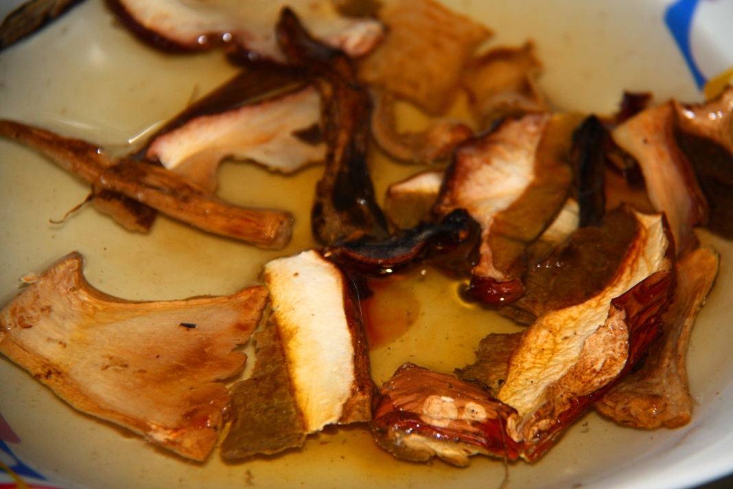 Для начала я замочил щепотку белых грибов, которые потом мелко порезал.