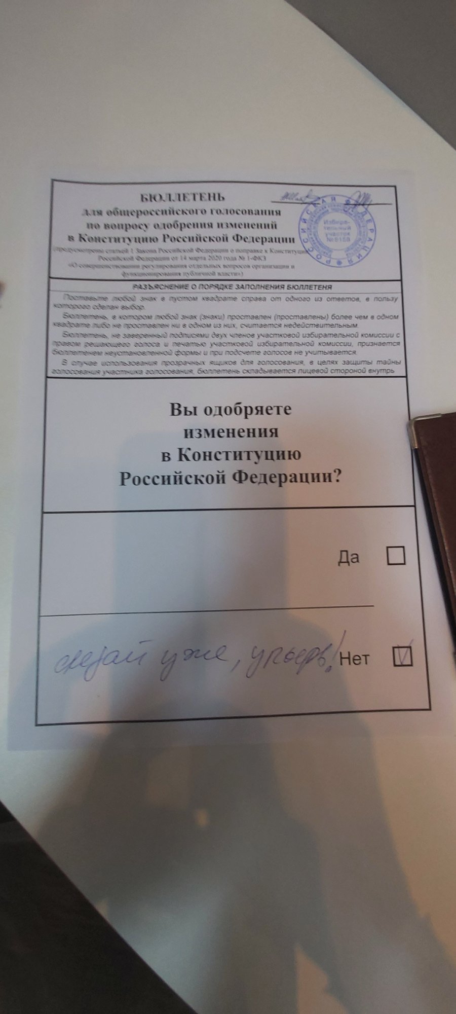 Baranoff писал(а): 01 июл 2020, 17:45 Ну вот, бюллетень испортил. Теперь голос не защитают