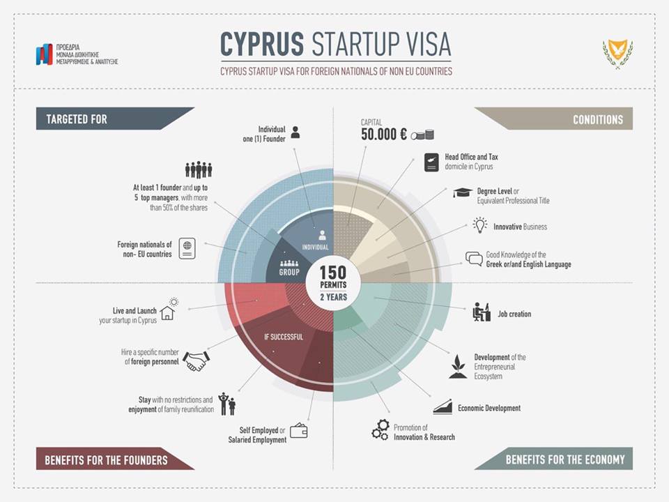 С февраля 2017 по февраль 2019 года на Кипре действует программа "Кипрская стартап виза", по которой не ЕС граждане могут в упрощенном порядке получить визу на Кипр, если: