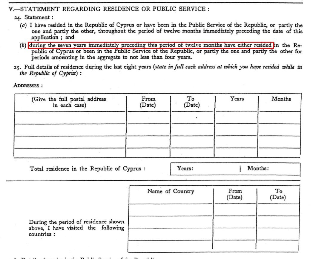 http://www.moi.gov.cy/moi/crmd/crmd.nsf ... enDocumentIt can be submitted by foreign nationals, who have completed seven years of legal residence in the Republic prior to the date of application. In cases of aliens who are either parents or children of Cypriot citizens the time required is five years rather than seven.