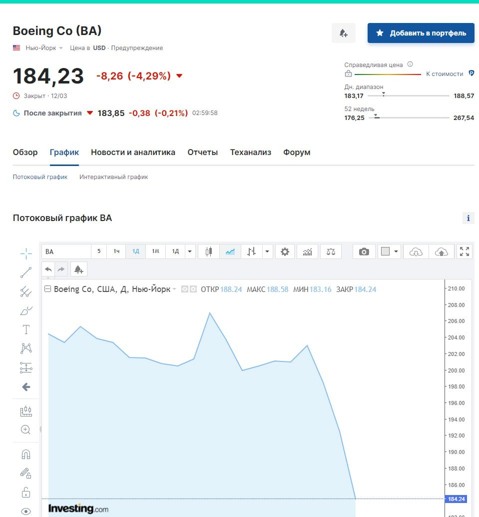 ...United Airlines просит Boeing больше не строить для компании уже заказанные самолеты 737 Max 10. Акции Boeing, тем временем, продолжают падать.