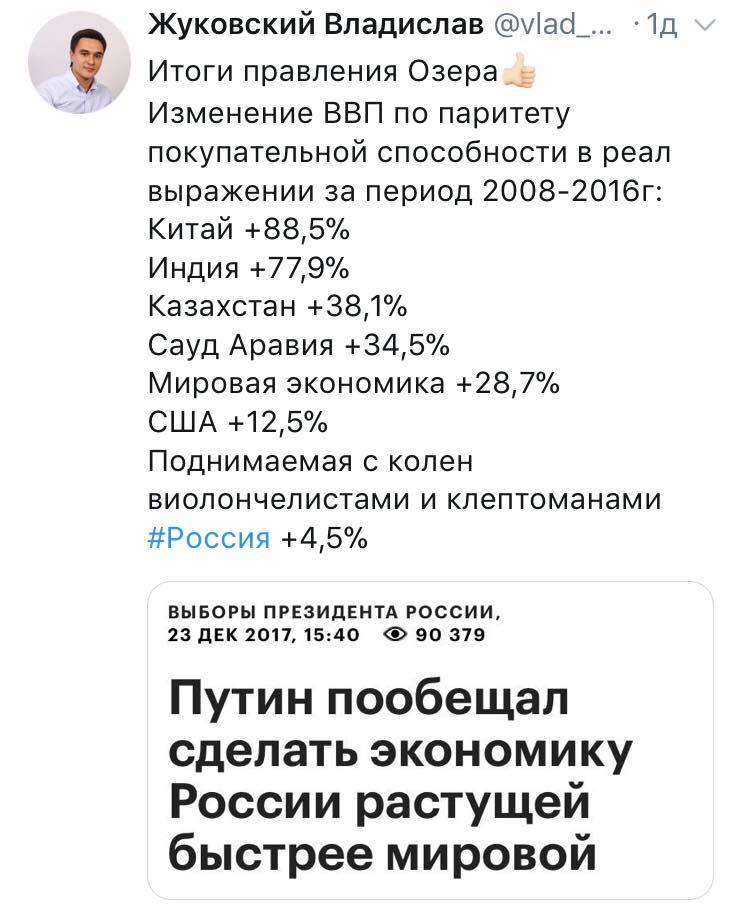alexalex Вы с Жуковским не в курсе, что банда Ельцина набрала кредитов столько, что вашим правнукам не выплатить, Россия была обречена сидеть в жопе и расплачиваться сырьем по процентам по кредитам, а при Озере их все закрыли. Почитайте Гугл. Путинвиноват.