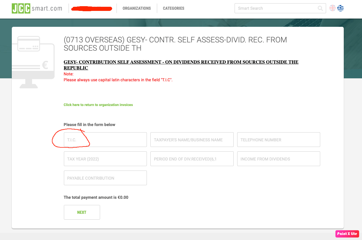 Ни фига не понимаю. Вот форма из JCC для оплаты GHS с дивидендов, полученных за пределами Кипра. Без T.I.C. не работает: