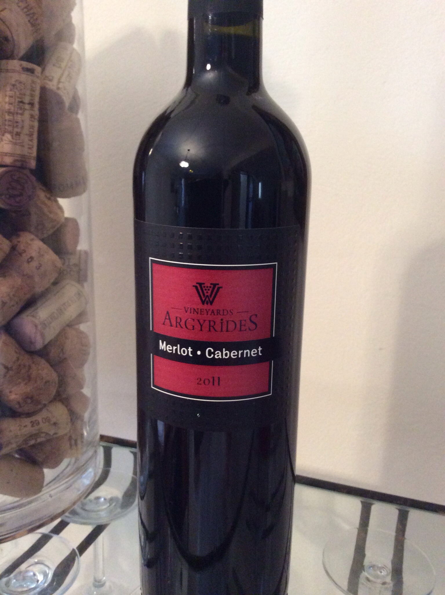 Честно сказать, не в восторге я от местных красных вин. О чем уже неоднократно говорилось. Но ресторан в Корносе, на который навела Chuma, другие не предлагает. Только местные. За это им дотацию от государства дают). По этому, внимательно выслушав меня, мужик предложил мерло-каберне. Положительный момент, что у них была бутылочка в холодильнике, уже открытая, т.к. им это вино только привезли и он всегда все вина сам пробует. Мне очень понравилось! Отлично, я вам скажу. Оно успело подышать. А вторую мы попросили заранее в декантер перелить. Мы все слова с бутылки списали. Думаю, приеду из России - займусь поиском. Приезжаю - нахожу в офисе кучу подарков от партнеров и друзей. Среди них 2 бутылки этого вина как раз. Без декантера тоже хорошо идет