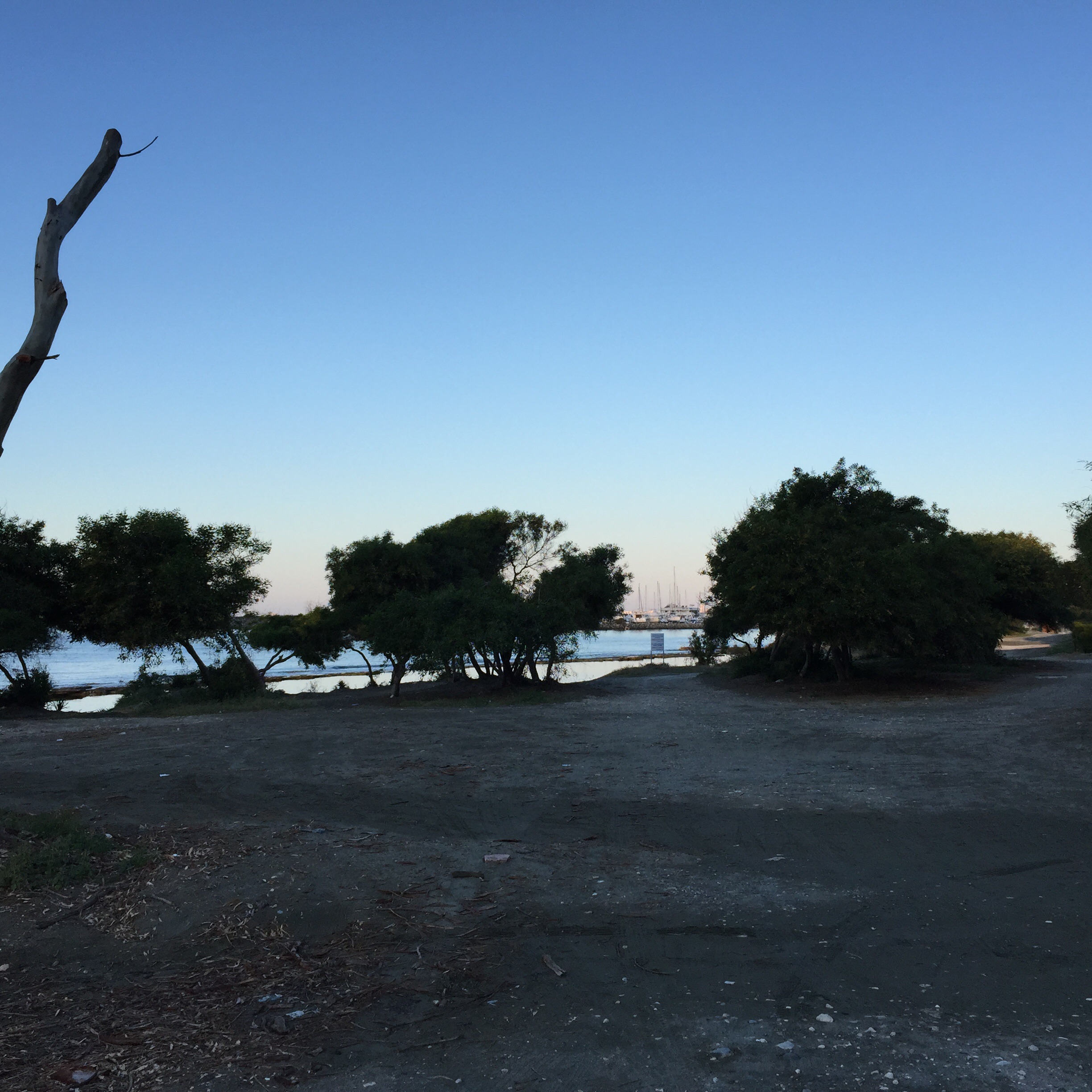 На рассвете, в 6 утра было 8 градусов, медленно теплеет. Море пустое, никто не плавает. Пасха.