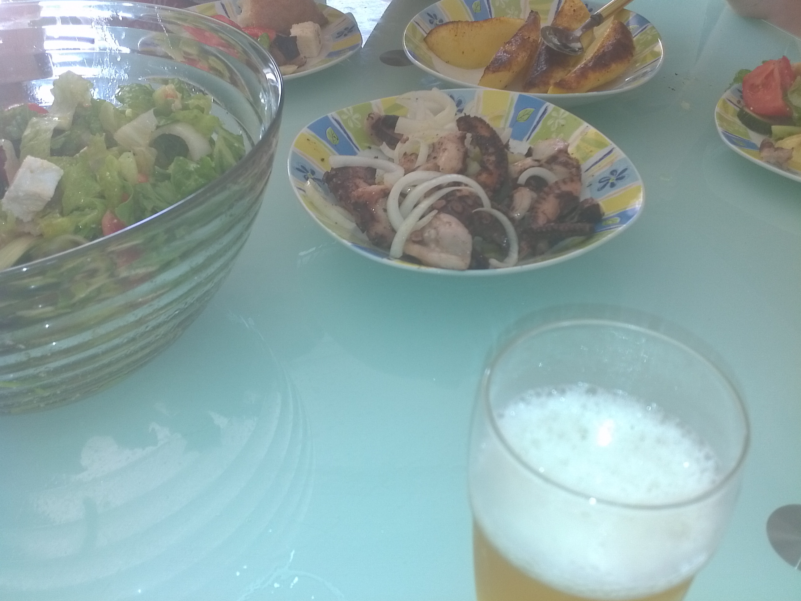 А у меня сегодня осьминог с Кипра. Вкусно. Жаль на работе вина приличного нет. (Кроме водки в холодильнике ничего нет). А икорка это хорошо. Мозгам полезно.