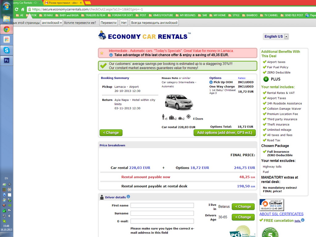Добрый вечер форумчанам. Собираюсь арендовать авто на Кипре, в аэропорту Ларнаки. Сайт -http://www.economycarrentals.com/. В ваучере в конце мелкими буквами есть такой текст - At the rental desk you must present: