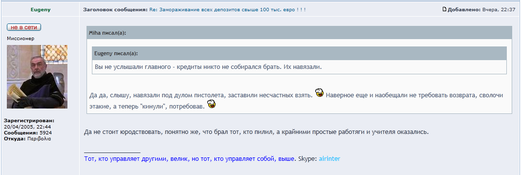 Тут же, рядом Евгений** пишет:Да, не стоит юродствовать, понятно же, что брал тот, кто пилил, а крайними простые работяги и учителя оказались.