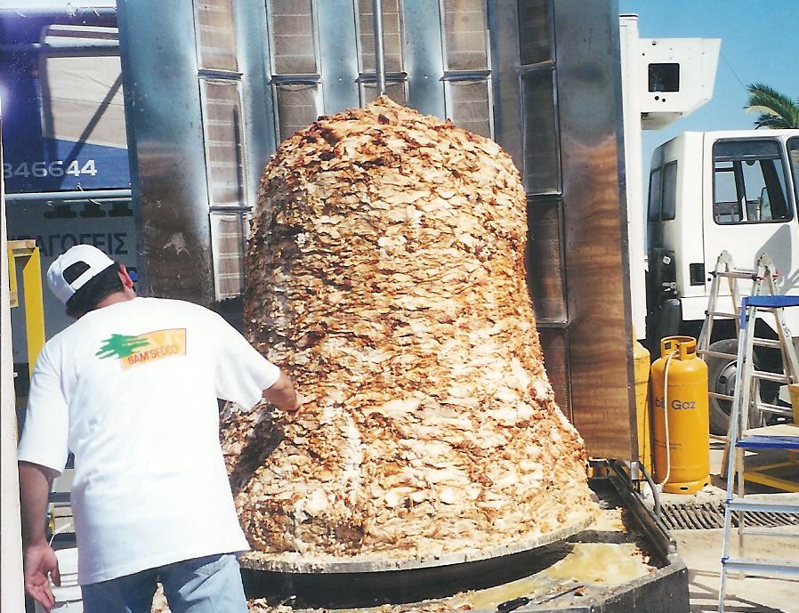 в городе Лимасол, изготовили самый большой в мире кебаб из курицы. Его высота - 2 метра, а ширина - 1 метр. Чтобы создать это произведение кулинарного искусства, пришлось потратить полторы тысячи цыплят. ( no cats!)
