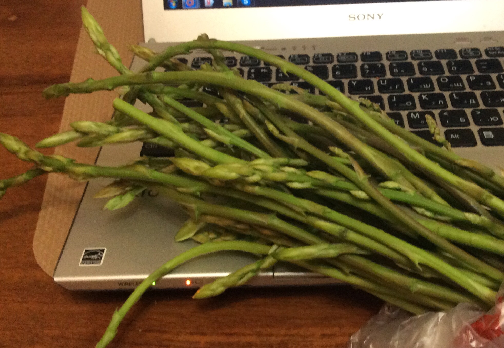 Если по здоровому, то 5 минут отварить и полив соевым соусом скушать или посолив слегка. Ну как гарнир к рыбке можно. А по вредному, то сделать белый соус со сливками. Только нижняя часть жесткая, я половину спаржины в ведро бросаю.