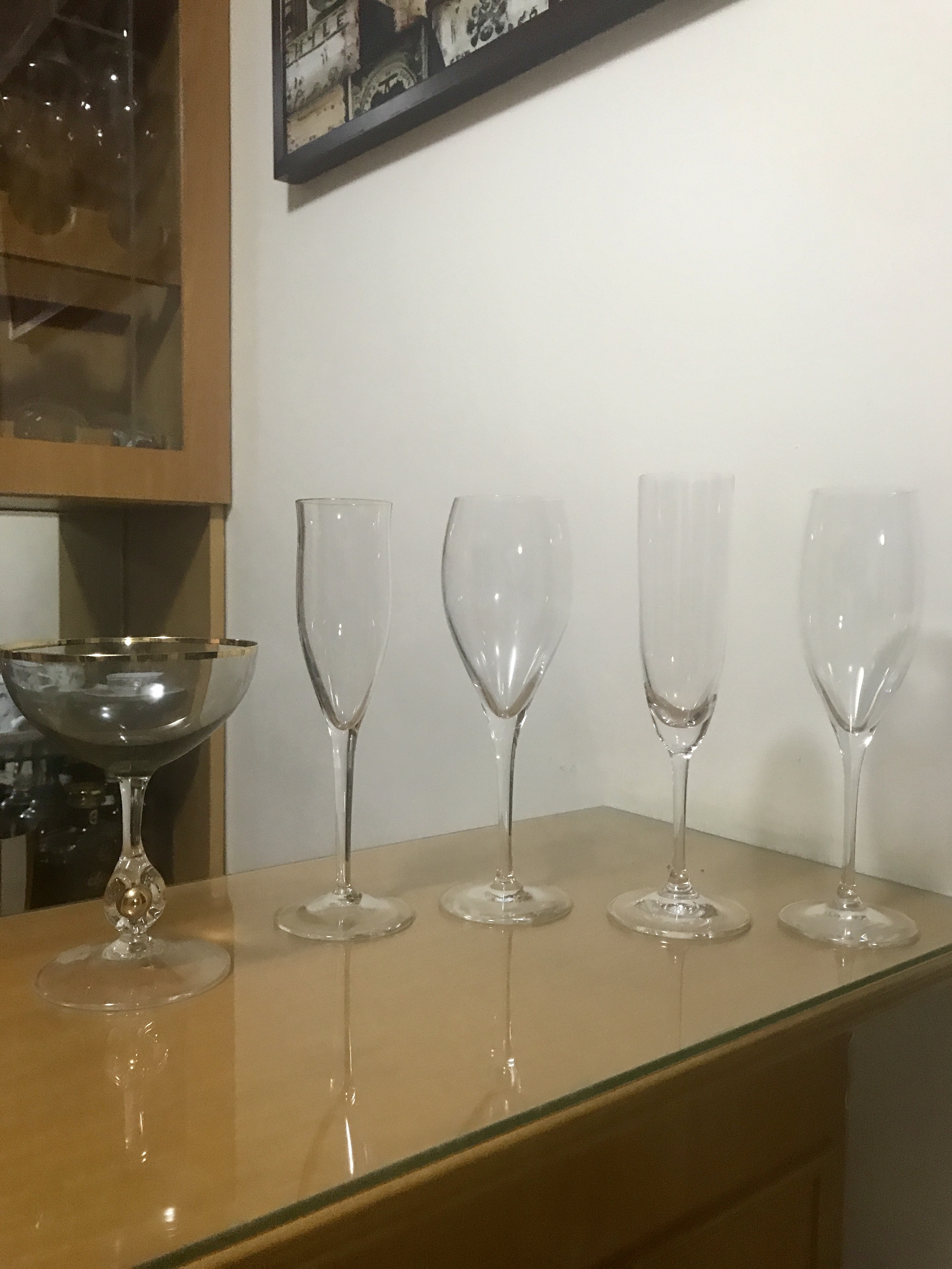 Второй слева и второй справа хороши и какая форма лучше, не хочу спорить- наливайте в оба- выпью. Кстати крайний слева тоже раньше считался хорошим под мускатное спарклинг, потом вышел из моды. Эти господа специалисты каждые десять лет меняют формы под шампанское, стАканы не успеешь менять.