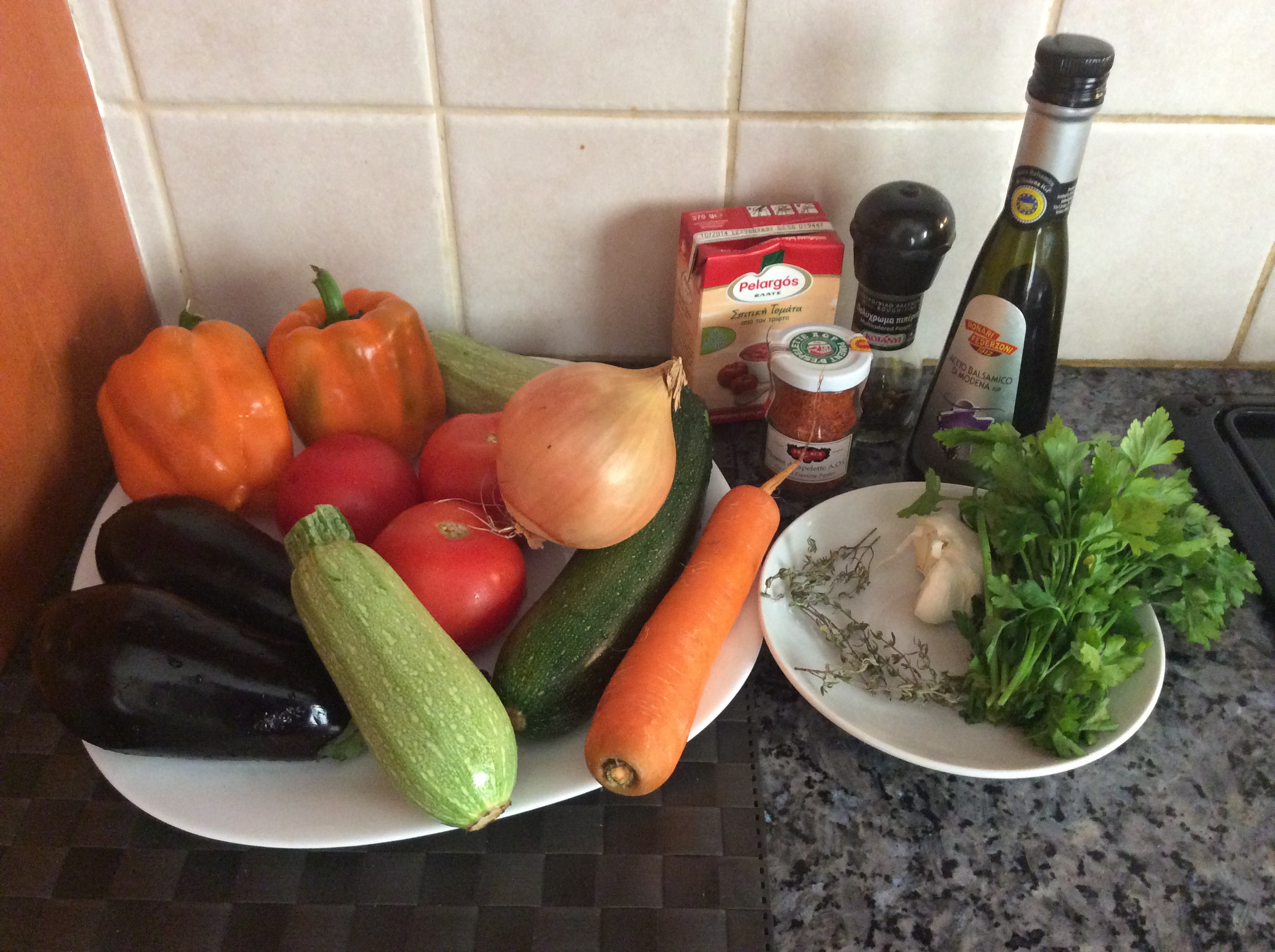 Вот это использованные продукты. Из запечатленного на картинке, осталось неиспользованным некоторое количество кабачков, цукини и баклажанов. остальное все ушло.
