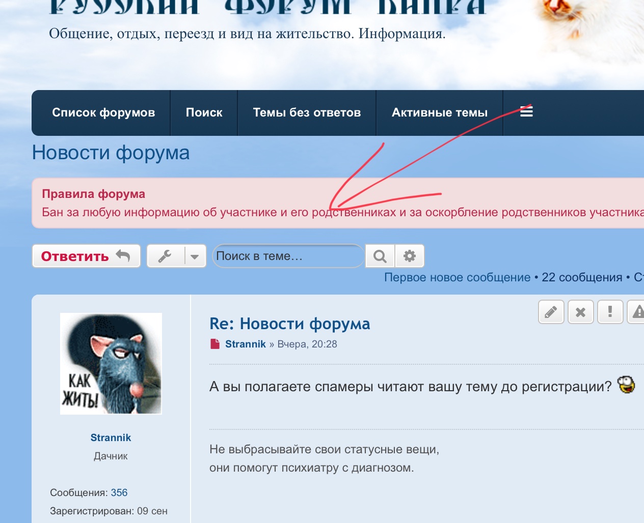 Strannik, Вы полагаете, что тему "ЛУЧШЕ ПРОЧТИТЕ ЭТУ ТЕМУ ДО РЕГИСТРАЦИИ" надо дополнить более подробным списком правил?