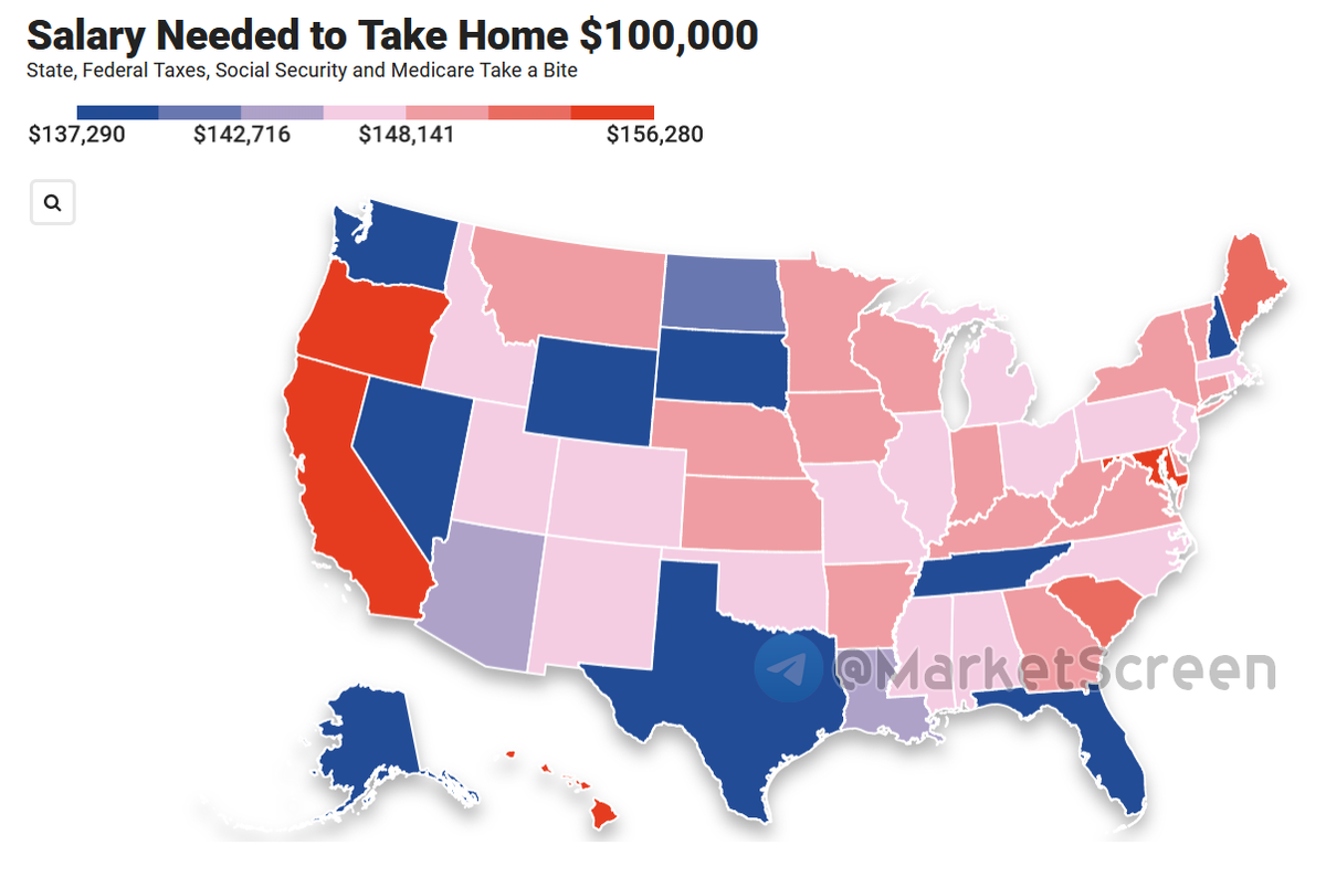 Например, чтобы просто забрать домой 100 000 долларов в Мэриленде и на Гавайях, людям нужно зарабатывать более 154 000 долларов в год. https://www.foxbusiness.com/lifestyle/h ... -home-100k